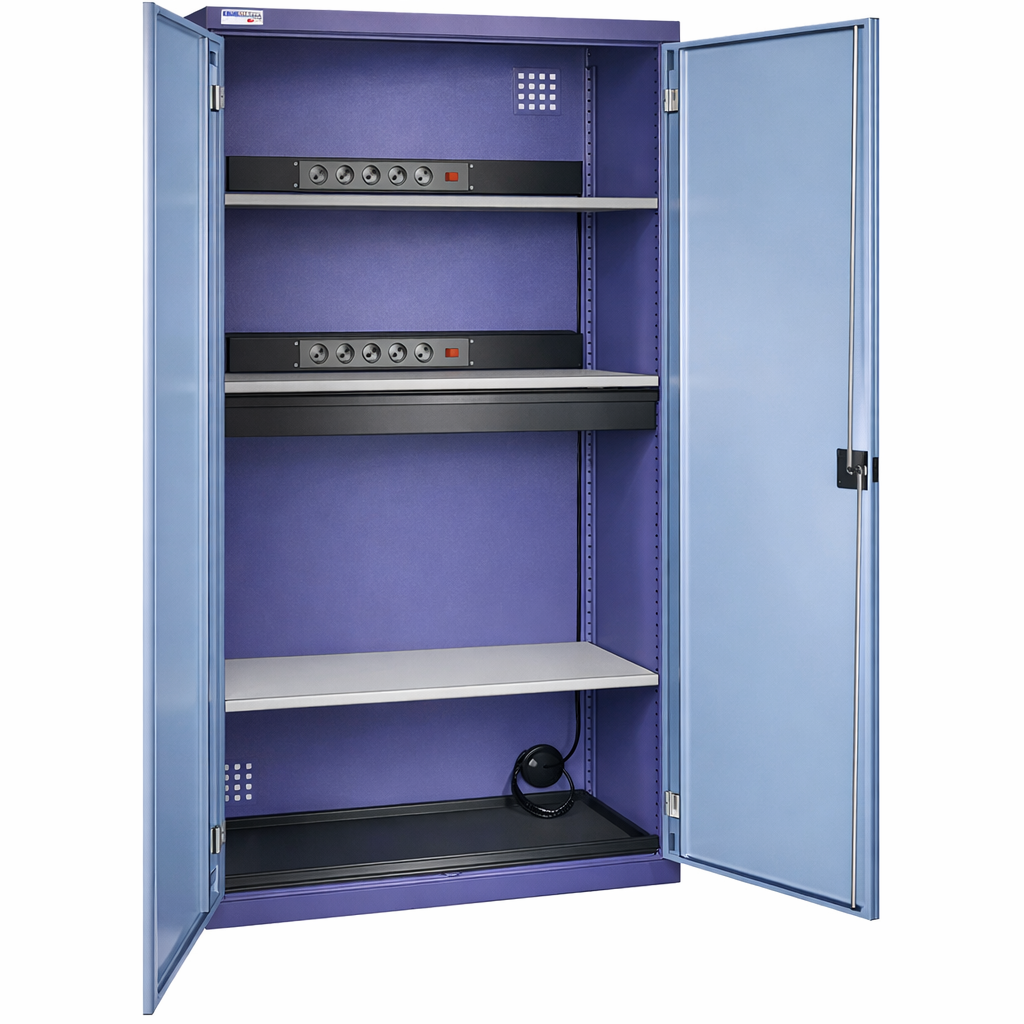 Cette armoire est idéale pour la recharge sécurisée des ordinateurs portables, tablettes, batteries et petits outils électriques, tout en garantissant la sécurité des utilisateurs et du matériel.